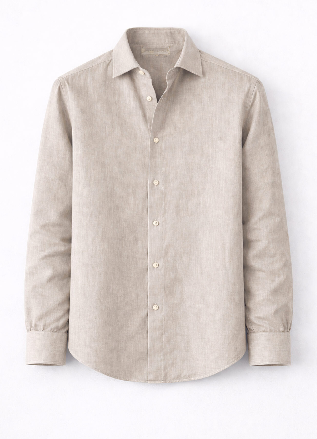 Bej Renk Uzun Kol Keten Gömlek