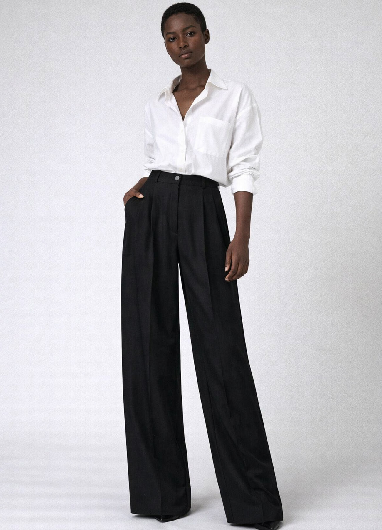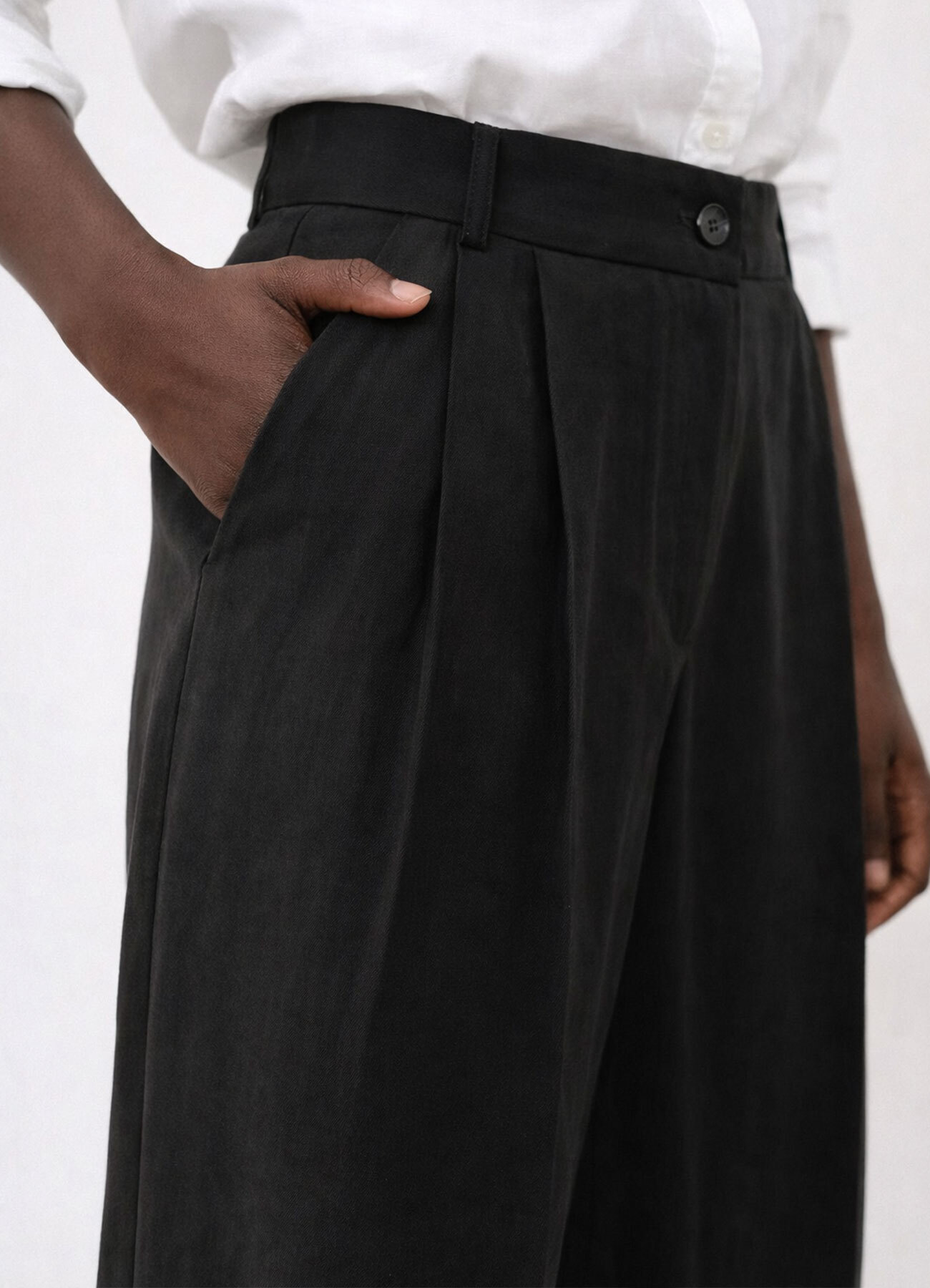 Siyah Renk Lyocell Karışımlı Pileli Palazzo Pantolon
