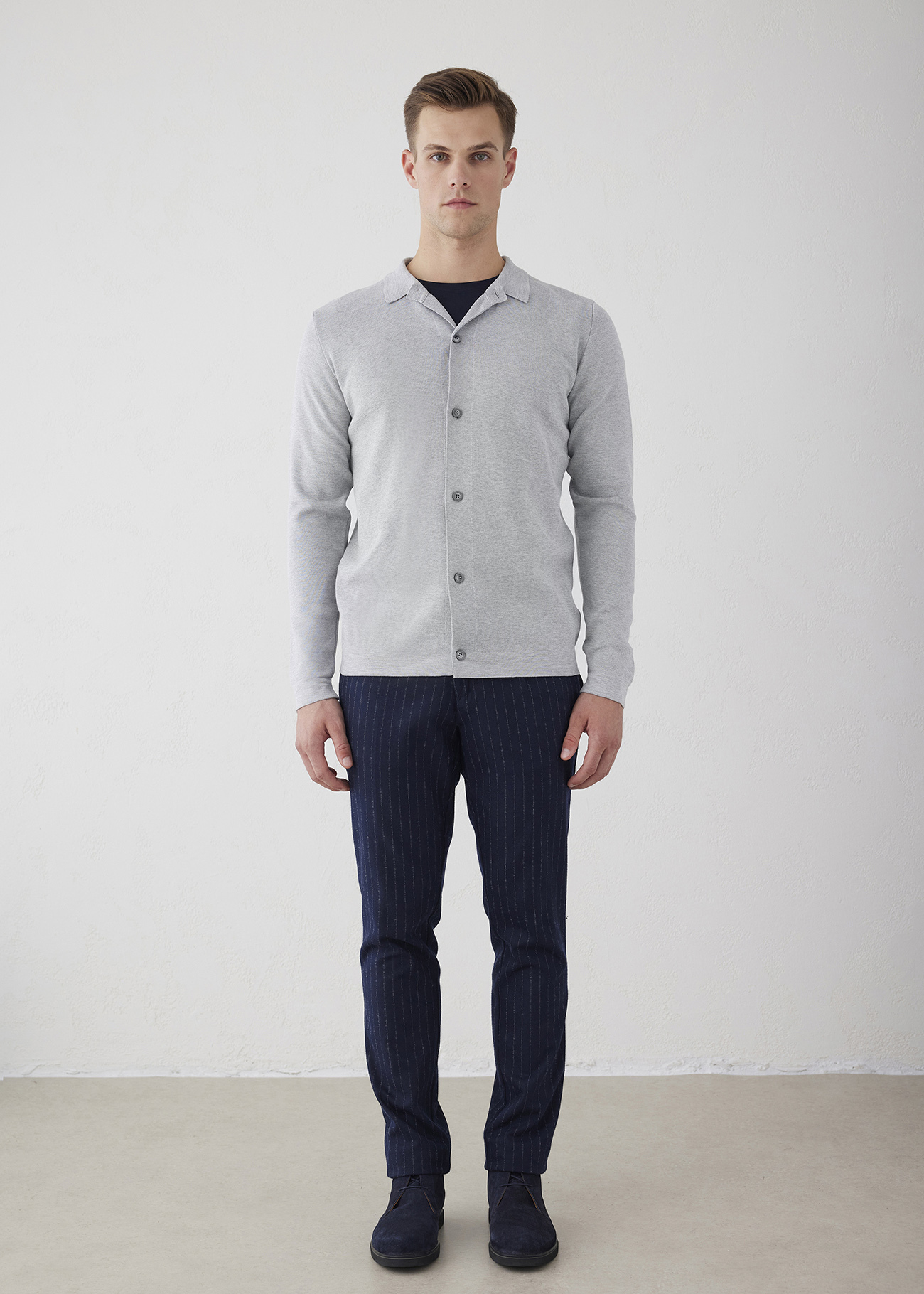 Gömlek Yaka, Düğme kapamalı Triko hırka. ~ Hırkanın Casual sitili, Trikonun rafine nitelikleri ve gömleklerin sportif nüansları birleştirilerek tasarlanan bu ürün, Karakteristik detaylar ile kombinlerinize rahat uyum sunarak tarzınızı zenginleştirmektedir.